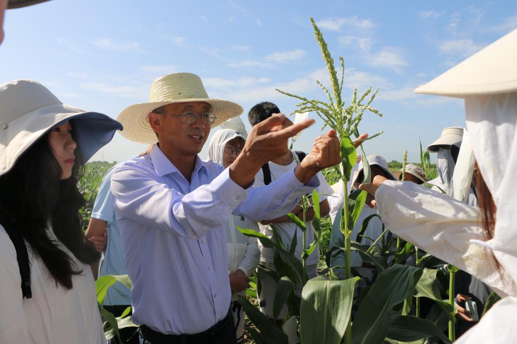 在甜糯玉米杂交种试验地里,同学们了解到甜糯玉米的制种原理,三系配套在玉米育种中应用的利弊。在专家老师的带领下,同学们纷纷涌入田间开展玉米杂交育种中的去雄工作,并在这个过程中体悟种质资源筛选的重要性,感受育种手段发展过程中继承与创新不断融合的趋势。种工2101班王桢说道:“玉米抽雄操作的学习让我明白,专业学习不能仅仅局限于对理论知识的死记硬背,一定要走出课堂,了解真正的生产实践,才能让所学知识得以应用。”