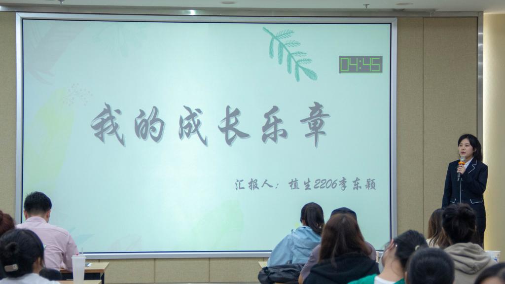 “我来人间一趟,心藏诗和远方;眼有星辰大海,心有繁花似锦。”这是植保2002班李高明对于自己大学四年的总结。大一成绩的不理想让他下定了逆风翻盘的决心,“有志者事竟成”,最终他如愿获得了保研资格。“星光不负赶路人,时光不负有心人”,李高明与大家共勉,希望同学们能在探索中努力成为更好的自己。植保2101班陈巧然将大学的经历比作攀登一座座高山。她讲述了自己攀爬科研竞赛、学生工作、社会实践等高山的历程。“登山的旅途是困难的,但并不妨碍我迎难而上。”她表示无论前方的旅途是风景还是迷雾,自己都会保持一往无前的冲劲,翻越重重高山,最终看到美丽的风景。