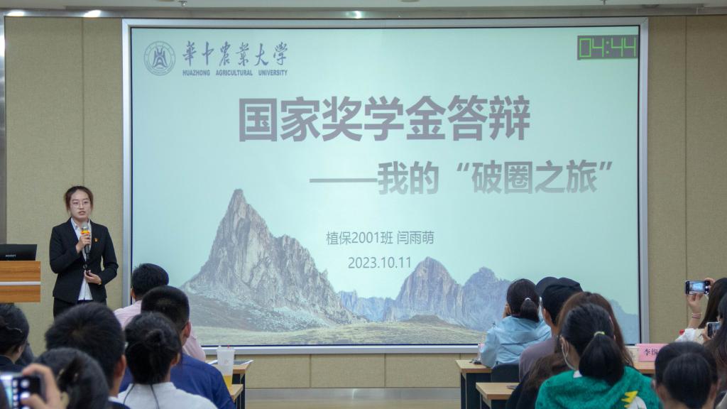 从清晨的小石墩到最后一遍铃声响起的四教,教学楼的五楼见证了农学2001班杨天旭大三学习生活的日日夜夜,他认为,知行合一,方能臻于至善;博观细取,方能厚积薄发。无论是学生工作,还是科创实践,他都和同学们一起奋发努力,共享青春。随后,植保2001班闫雨萌与大家分享自己的“破圈之旅”。从大一到大三,她一直努力从舒适圈中走出,在破圈之路上,她始终保持优秀的学习成绩,先后参加了各类科研竞赛,所获得的奖项也实现了校级到国家级的跨越。不同的经历带给闫雨萌不同的收获,她将在新的广阔天地中继续她的“破圈之旅”。