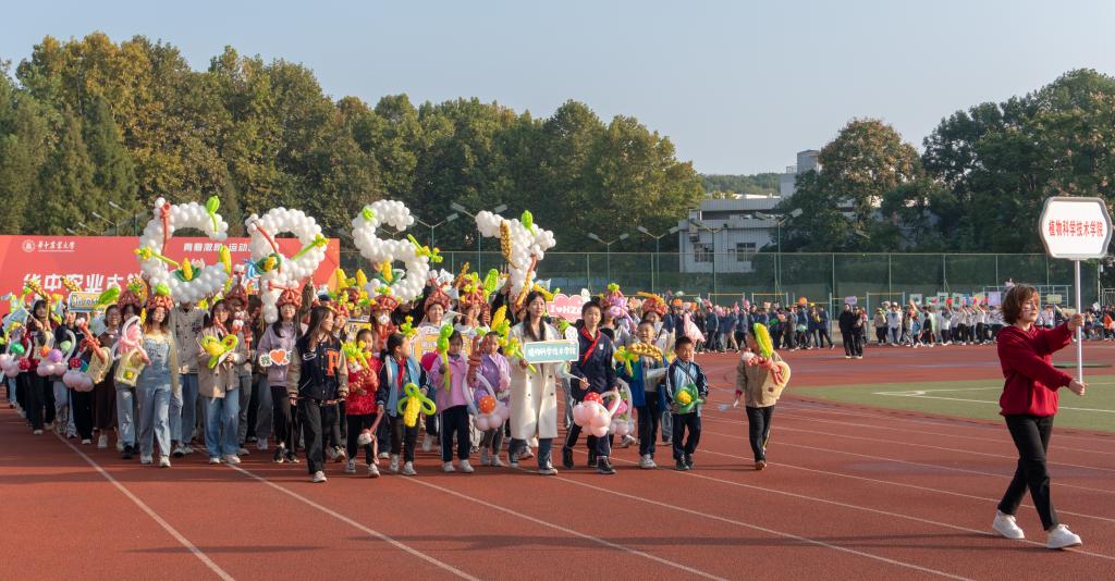 老师与学生组成“植科”方阵,迈着坚实有力的步伐,缓缓步入操场。老师与同学们手持棉花、蘑菇、玉米、小麦等气球模型,昂首阔步走过主席台,老师同学们或交流着,或微笑着,小朋友们也兴奋地东张西望,展现着独属于植科的精神风貌。“踏浪前行风正劲,不负韶华争朝夕。”新时代的植科人,正向着美好未来前进着。