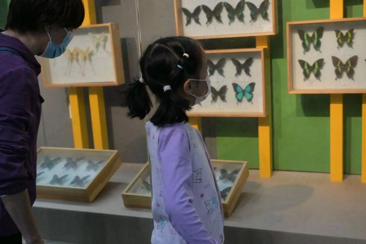 为促进孩子们更加全面的认识人与自然的关系,志愿者们特邀请孩子们走进学校博物馆并结合馆中各陈列单元循循善诱,各个场馆主题各不相同,涉及知识类型也大不相同。“蛰鸣蛱翩(昆虫)”回顾2期青龙山探索昆虫世界并提升对昆虫的认识;“野性自然(野生动物)”培育人与动物共享自然的意识、“温驯家园(畜牧兽医)”了解人类驯化动物的历程、“本草芳华(植物)”传达动植物相互依存的自然法则、“大地宝藏(土壤地矿)”清晰描绘自然地理。一位家长不禁评价:“这是参观过的最有趣的博物馆。”