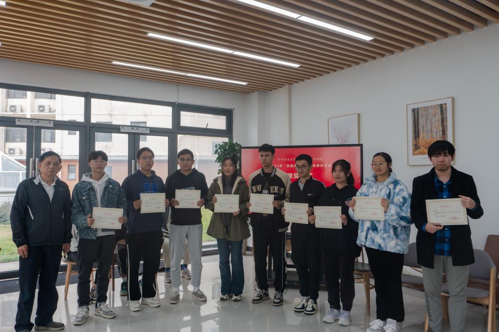 随后罗利军校友为奖学金获得者颁发荣誉证书,他对同学们的参赛成绩表示肯定,并希望大家能够再接再厉,在未来的比赛中再创佳绩。