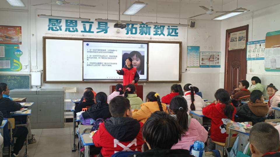 课堂上,孩子们端正地坐在座位,纷纷抬起头,张着求知的大眼睛,认真地聆听志愿者的讲述,回答问题时积极分享自己的所学所思。
