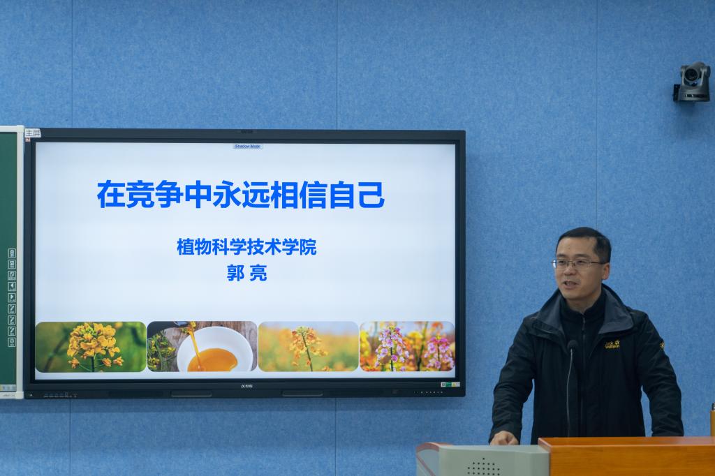 副院长郭亮教授受邀以“在竞争中永远相信自己”为主题,结合自身经历,与同学们进行交流。