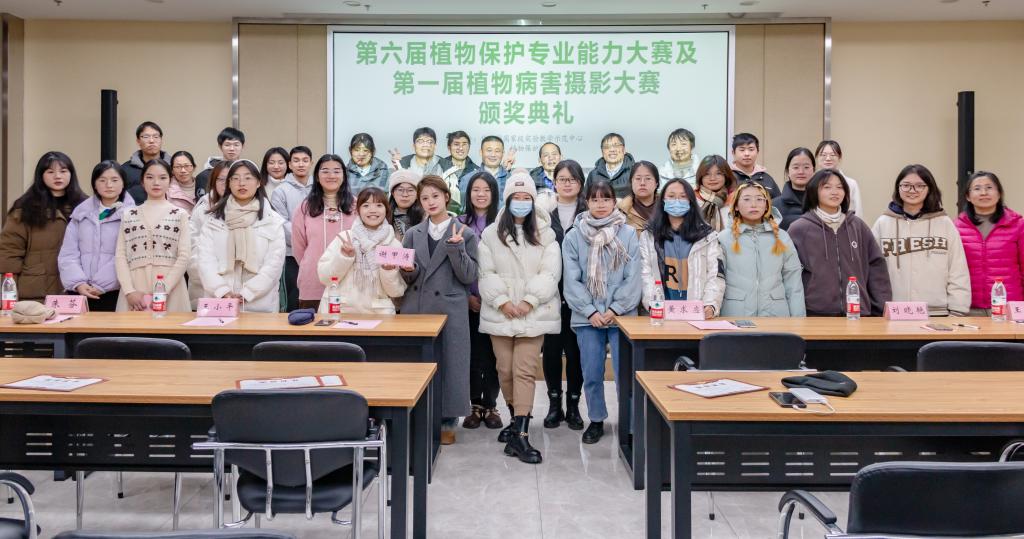 12月21日晚,由植保协会举办的“植物保护能力大赛”和“植物病害摄影大赛”颁奖典礼在第三综合楼A705如约展开。谢甲涛、黄求应、朱芬、王小平、刘晓艳、吴明德和王佳璐等老师和全体获奖同学共同出席了本次颁奖典礼。