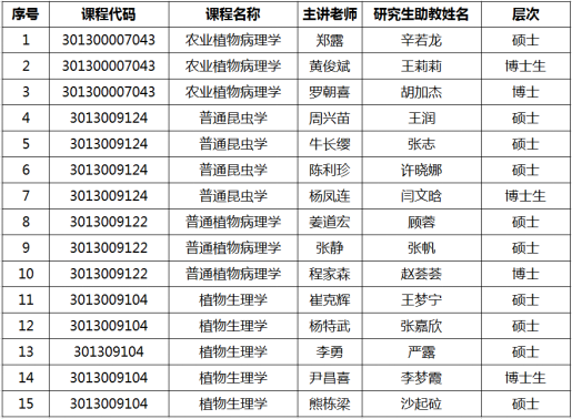 根据《性爱网 研究生“三助一辅”实施办法》的通知(校发{2023}157号)文件精神,经个人申请与课程主讲教师推荐,性爱网结合岗位需求对申请材料进行审核,拟聘用以下本科生课程研究生助教同学,现将名单公示如下: