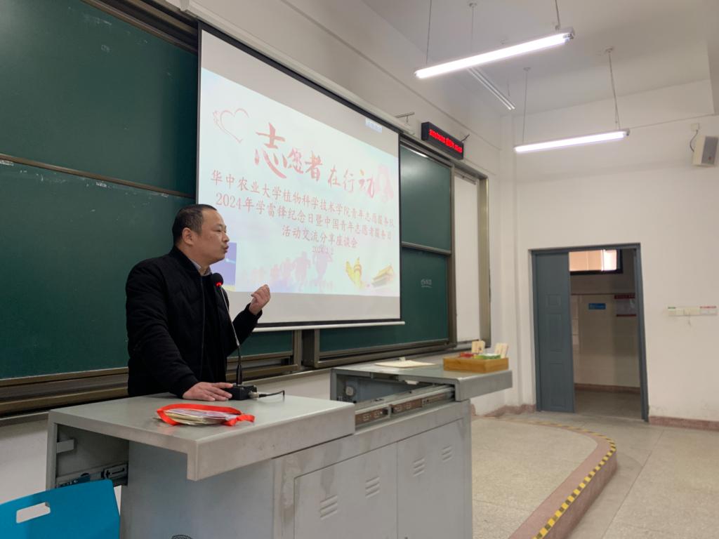 3月2日,为迎接2024年学雷锋纪念日的到来,植科院在四教C102举办了青年志愿者服务日活动交流分享座谈会。武汉青年志愿者协会志愿者培训督导部部长、高级讲师李祎明和武汉市江夏区小荷花青少年绿色公益发展中心负责人陈亮依次分享举办志愿活动的经验与理解。