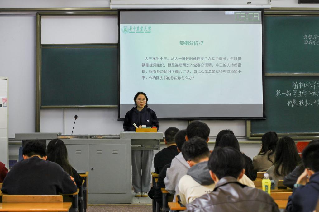 在情景模拟环节,参赛学生扮演不同角色,如班级职务、部门负责人或调解员,面对较为复杂的学生工作任务和人际关系,他们展现出条理清晰、应变自如的能力。他们不仅能够深入剖析问题,还能结合实际情况,提出切实可行的解决方案,充分体现了学生工作中的沟通艺术和应急处理能力。