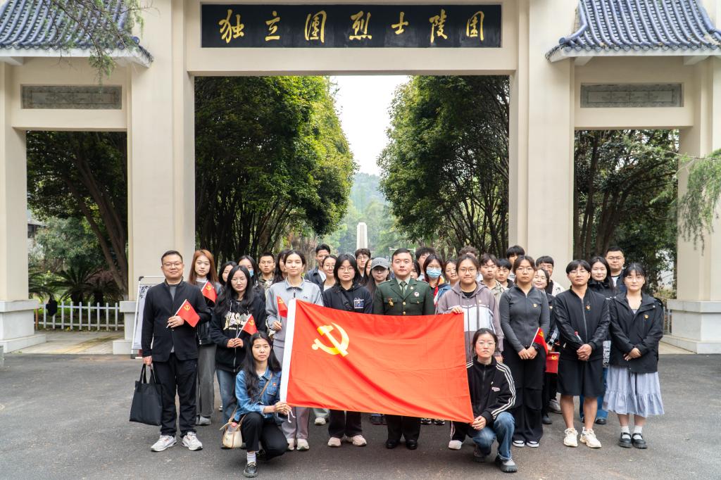 青山埋忠骨,翠柏缅英雄。在庄严的北伐独立团烈士纪念碑前,党员代表敬献花圈,全体党员整齐列队,肃立默哀,深切缅怀为保家卫国而英勇牺牲的革命烈士。默哀结束,植物病理专业研究生第1党支部刘寒冰带领全体党员,在烈士纪念碑前重温入党誓词。此刻,仿佛又回到了那个充满激情和理想的年代,在声声誓词传承着共产党人初心不改、矢志不渝的奋斗精神。
