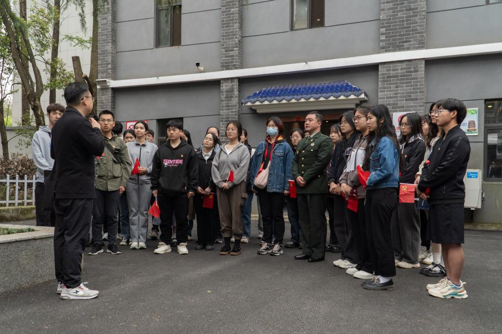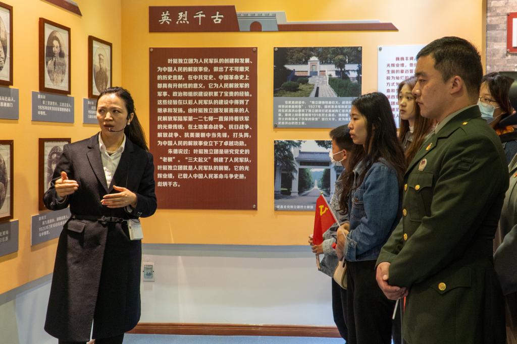 师生党员走进叶挺独立团武昌纪念馆,在栩栩如生的画面中,进一步感悟前辈先烈的革命精神。在纪念馆中,唐尚书引经据典,结合管内展览为师生党员上了一趟别开生面的微党课。“为人进出的门紧锁着,为狗爬走的洞敞开着,一个声音高叫着:爬出来吧,给你自由!……我应该在烈火和热血中得到永生。”唐尚书引用《囚歌》中的诗句,向成员们展示叶挺将军的凛然正气与高尚人格。他进一步补充了北伐战争历史背景以及其背后所蕴含的历史意义。唐尚书勉励现场党员:“我们在此缅怀革命先烈,首先,一定要知道他们的故事,了解他们是为谁在奋斗;其次,我们要从中领悟所蕴含的历史精神,即不畏牺牲、敢于斗争、齐心协力、团结协作的斗争精神。希望同志们铭记历史、不忘初心使命,为祖国的建设添砖加瓦!”
