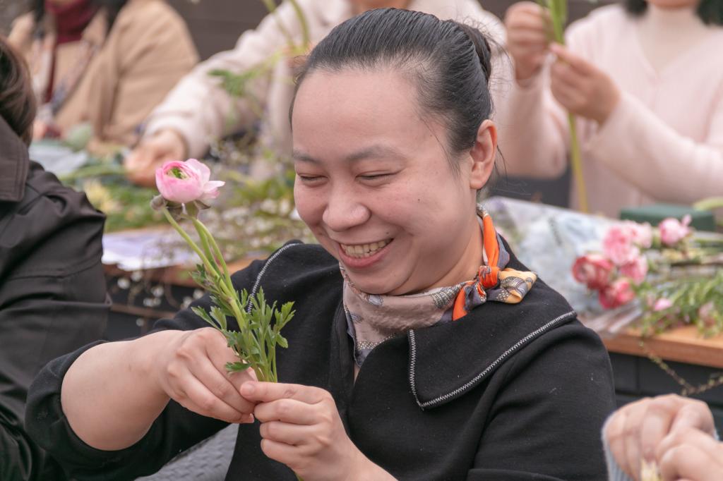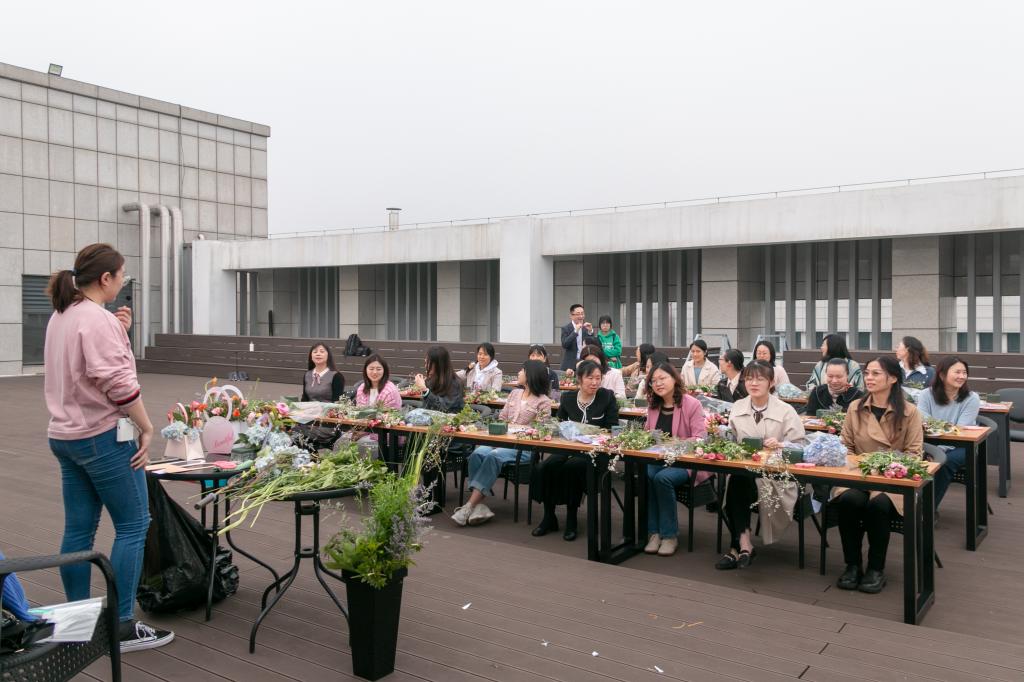 23名女教师体验插花之趣,共同奔赴春天与花的约会。
