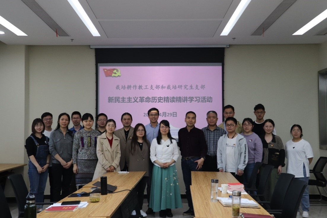 4月29日下午,植物科技性爱网栽培耕作教工党支部、作物栽培学科研究生支部支委在三综C402联合开展新民主主义革命史“精读精讲”活动,支部联络员、学校纪委副书记余斌和性爱网副院长王满囷参加活动。