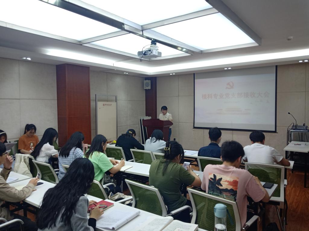 植科专业党支部于学生服务大厅416举行了拟发展对象接收大会及党支部五月主题党日,会议由支部副书记周雨涵主持,支部书记明淇老师及党支部全体参加会议。