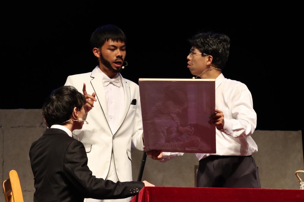 最后,同学们对“油漆未干”的含义进行了深刻的讨论,罗森的扮演者叶浩然讲道:“首先,油漆未干可以代表人的状态,很多人会根据环境的变化见风使舵。他们既可以追寻橙色的光明,也会去摸索混沌的黑暗,他们没有稳定的价值观,在油漆未干之前,你永远不知道他们会变成什么颜色。其次,话剧的名字仿佛告诫人们请勿靠近未干的油漆。从而告诫我们不要去学习丑陋的世俗,而是要在变化的世界中,去追寻本我的善良。”