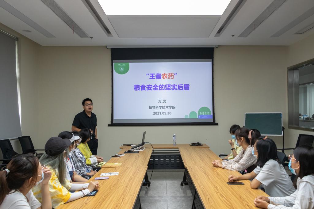 在农药方面颇有研究的万虎老师为大家详细介绍了农药的定义与发展史。他表示,农药不但是确保粮食供应的必要手段之一,而且它在改善人类生活中起着重要作用,在介绍农药的发明过程时,他表示在自然科学研究过程中,希望同学们留心身边的细微事物,主动探索发现。熊栋梁教授结合自身工作经历亲切的为大家提供学习和生活建议。“不要局限于自己的专业和自己的学习成绩。要充分的挖掘自己的价值,要坚持自己,不要盲目跟风。”