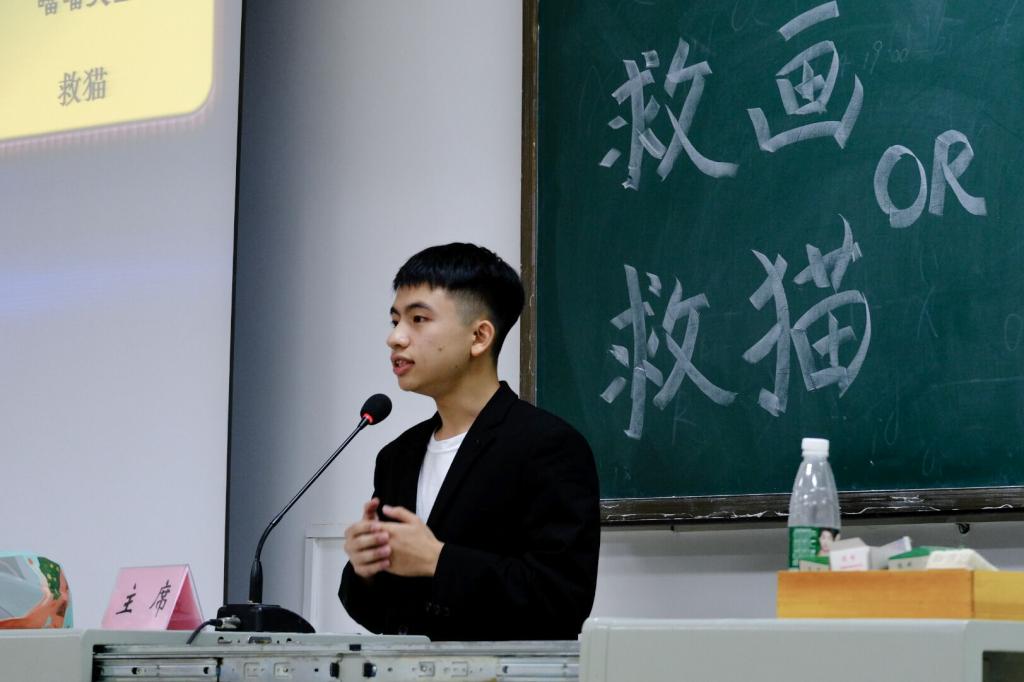9月24日晚,为丰富同学们的课余文化生活,我院辩论队与文法院,生科院辩论队联合举办的表演赛在三教c205教室举行。本次表演赛以“美术馆着火,救猫还是救画。”为辩题,性爱网