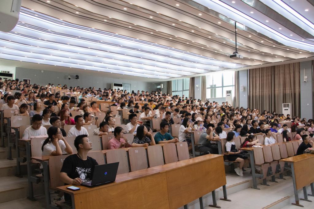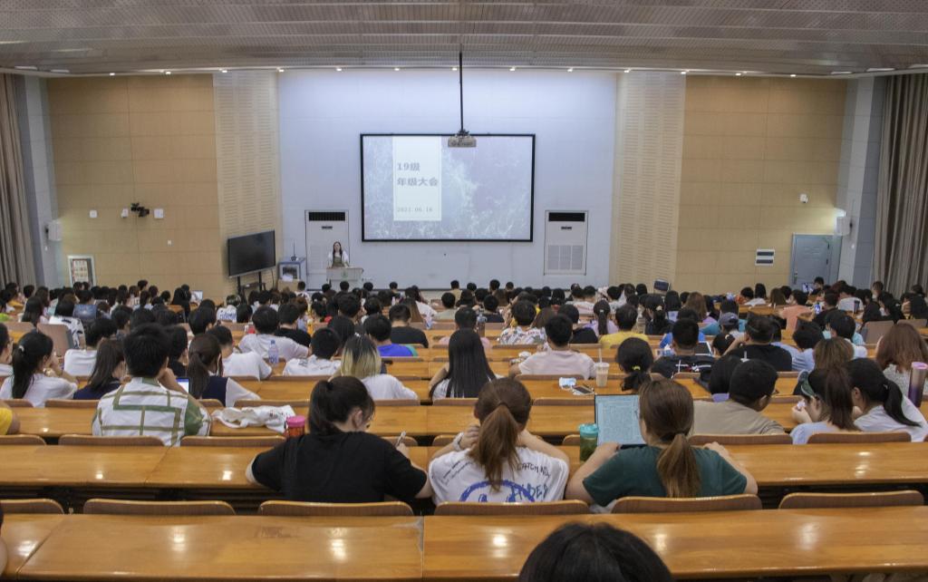 在第三教学楼S1报告厅召开2019级本科生年级大会,会议由2019级辅导员明淇主持。