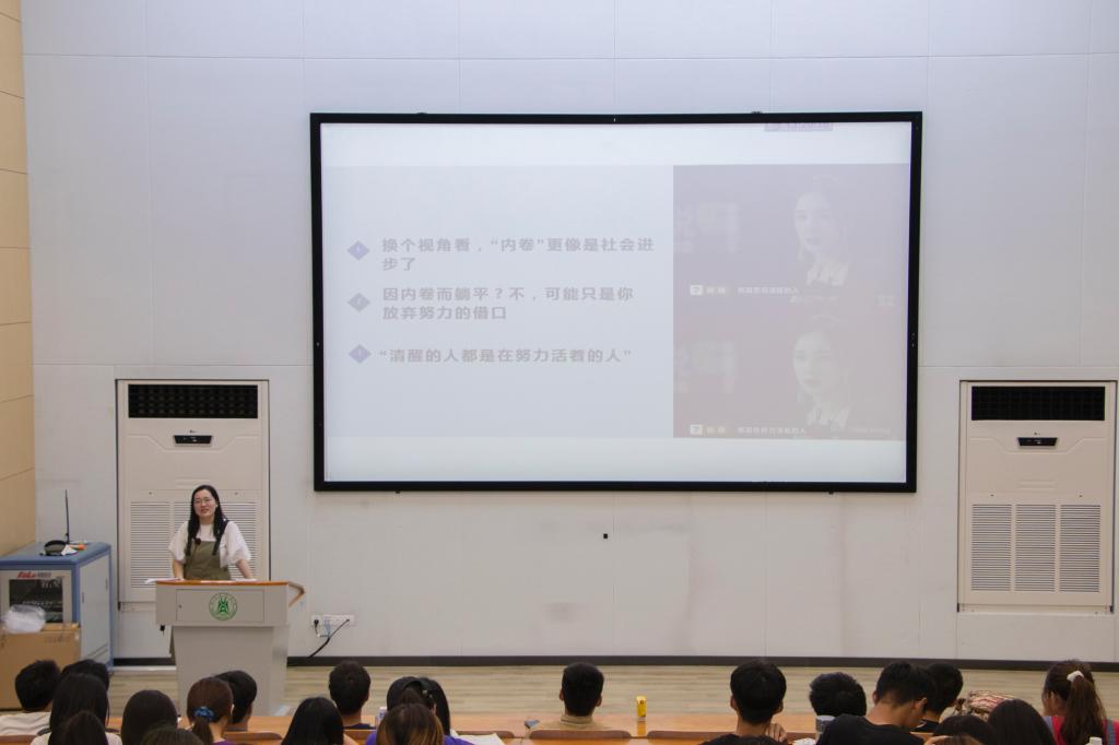 最后,辅导员明淇以“若心有向往,何惧道阻且长”鼓励2019级植科生积极备考本学期期末考试,圆满完成本次暑假社会实践活动,奋力拼搏大学时期的每一天。她对当下大学生热议的“内卷”一词提出自己的看法,认为这恰恰表明了社会的进步与发展,社会整体文化水平和发展水平在提高,在这样的情况下,国家更加需要人才,所以“学历越来越不值钱”是个假命题。明淇通过身边的例子,告诉大家现在的生活较之以前,要面对的压力和要付出的努力都在增加,但与此同时,很小的一点提升便能够超越许多人。她期待同学们在面对压力时能够不抱怨,尽自己所能做到极致。大会最后,明淇就期末考风考纪、暑期安全、防范电信诈骗等主题做了相关提醒,希望大家能度过一个安全愉快的假期。