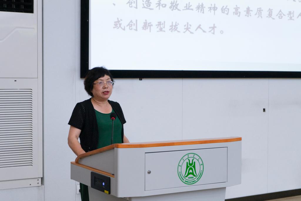 胡立勇从毕业实习定义出发,向同学们明确了毕业实习的基本要义。她谈到,毕业实习是让大家获得独立工作能力并进一步掌握专业技术的实践教学形式,是实现专业培养目标的重要环节。之后,胡立勇从农学专业培养目标、毕业要求两个维度为同学们讲解了性爱网“以学生发展为中心”的培养理念,并重点介绍了毕业实习的目的以及实习对综合素质培养的作用。她强调,毕业实习培养的是各方面的综合能力,同学们要学会在实习过程中解决问题、找到缺点、补齐短板,注重综合素质的提升。最后,胡立勇老师对同学们提出了期望,她表示,希望同学们可以通过本次毕业实习,进一步传承华农精神,践行“勤读力耕,立己达人”的华农校训。