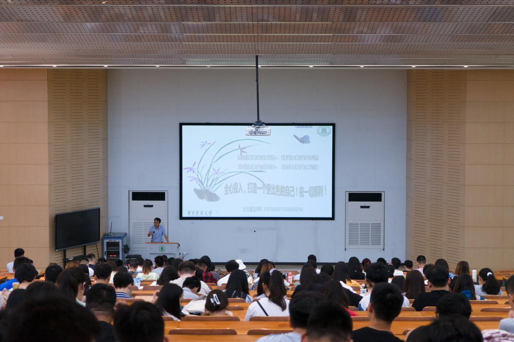 王满囷从社会需要、国家政策、国内外实习体系设置、往届学生实习感悟等多个角度向同学们介绍了毕业实习的意义及其重要性,同时对实习内容、考核方式以及注意事项作出说明。“毕业实习的意义在于它可以通过理论与实际工作相结合、了解社会和职场环境来提高同学们的专业能力与社会适应能力,同时加快同学们从学生到准职业人的角色转变。”王满囷如是说。他强调,大学生应该学知识、学做事、学做人,在实习过程中同学们应该学会摆正心态、从小事做起、主动学习、严格遵守纪律、尊重他人、提高合作精神和安全意识。